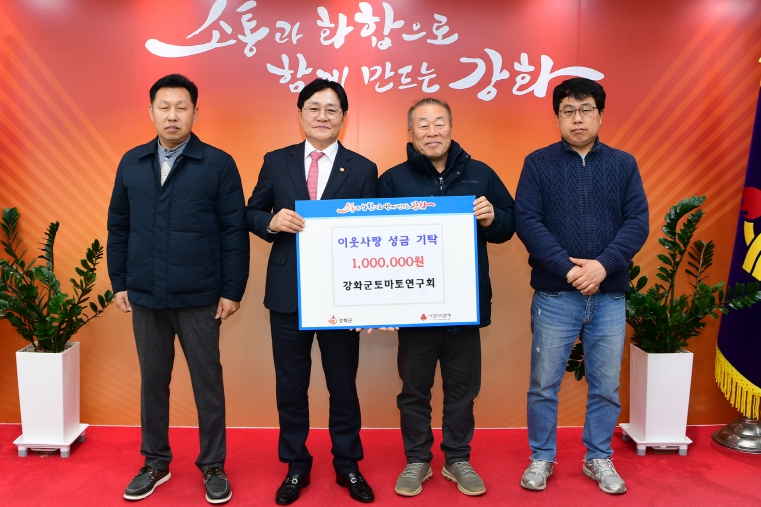 | ▲ 강화군 토마토연구회, 이웃사랑 실천 성금 100만 원 기탁 |