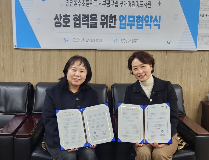 [뉴스앤톡] 부평구립 부개어린이도서관은 지난 20일 인천동수초등학교(교장 박정애)와 어린이 독서문화 확산을 위한 업무협약(MOU)을 체결했다.