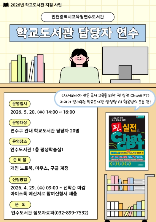 [뉴스앤톡] 인천광역시교육청연수도서관은 5월 20일 학교도서관 담당자의 실무 역량을 높이기 위한 ‘학교도서관 담당자 연수’를 운영한다.