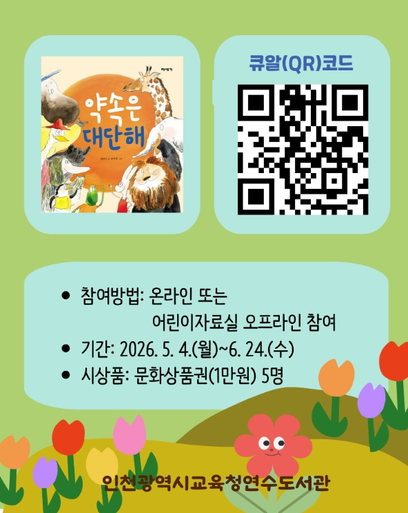 5월부터 6월까지 진행되는 이번 프로그램은 선정 도서인 '약속은 대단해'의 청렴을 주제로 진행되며, 어린이들이 일상생활 속에서 약속과 질서를 지키는 것의 의미를 이해할 수 있도록 기획했다.
