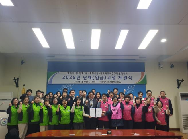 [뉴스앤톡] 울산광역시교육청을 포함한 전국 17개 시도교육청이 11일 인천광역시교육청에서 전국학교비정규직연대회의와 ‘2025년 집단 임금 교섭 체결식’을 열었다.