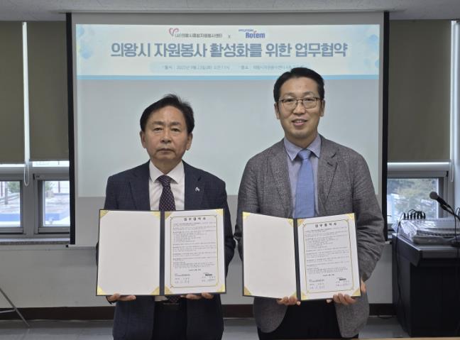 [뉴스앤톡] (사)의왕시종합자원봉사센터는 현대로템(주)과 9월 23일 센터 교육장에서 자원봉사 활성화를 위한 업무협약(MOU)을 체결했다.