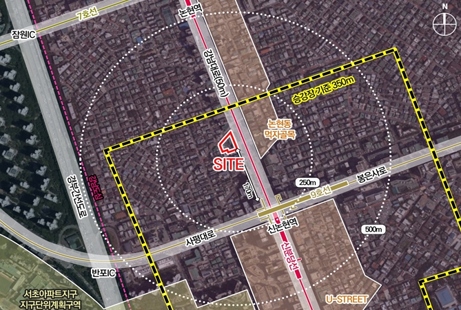 대상지는 9호선과 신분당선이 교차하는 신논현역 인근의 강남대로변에 위치하고 있으며, 업무시설을 포함한 복합문화 상업공간을 조성하는 사업이다. 이를 통해 강남도심의 업무기능이 강화되고 역세권 중심의 가로 활력이 확산될 것으로 예상된다.
