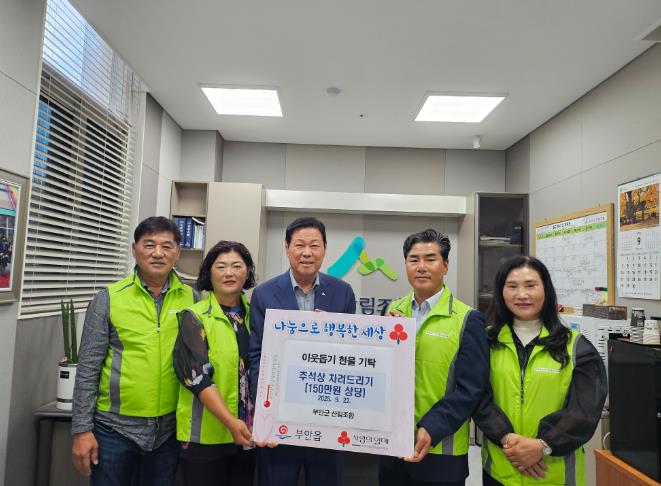 [뉴스앤톡] 부안군 산림조합은 22일 다가오는 추석 명절을 앞두고 부안읍 지역사회보장협의체에 150만원 상당의 현물을 기탁하며 따뜻한 이웃사랑을 실천했다.