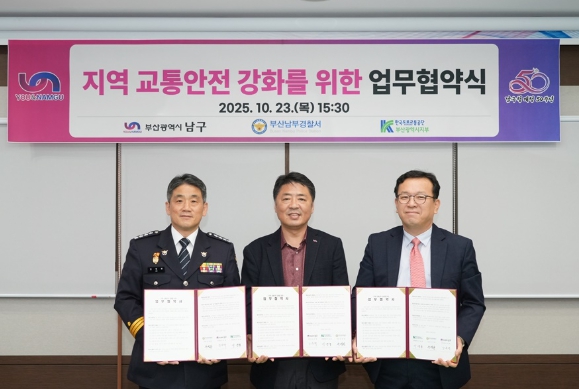 [뉴스앤톡] 부산 남구는 지난 10월 23일, 부산 남부경찰서 및 도로교통공단 부산광역시지부와 함께‘지역 교통안전 강화를 위한 업무협약’을 체결했다고 밝혔다.