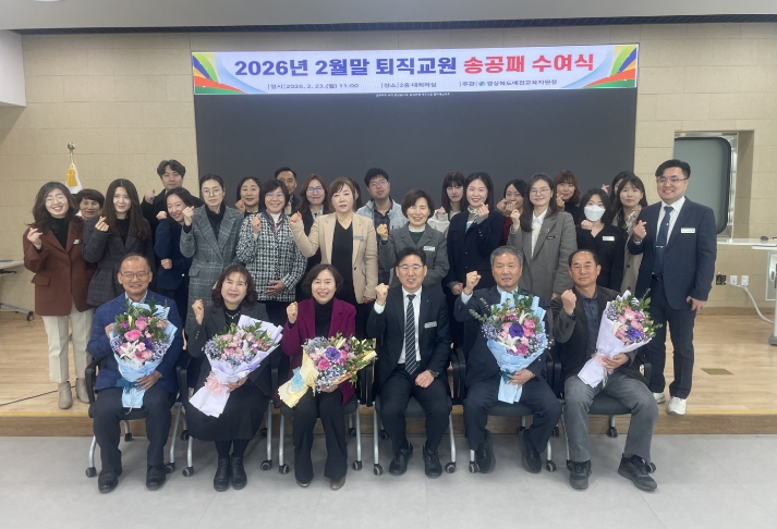 [뉴스앤톡] 예천교육지원청은 2026년 2월 23일 교육지원청 대회의실에서 ‘2026년 2월말 퇴직교원 송공패 수여식’을 개최하고, 교육 현장에서 오랜 시간 헌신과 열정을 다해온 퇴직 교원들의 노고에 감사를 표했다.