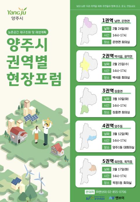 [뉴스앤톡] 양주시가 오는 24일부터 3월 17일까지 5차례에 걸쳐 ‘농촌공간 재구조화 및 재생 기본계획’ 수립을 위한 권역별 주민현장포럼을 개최할 예정이다.