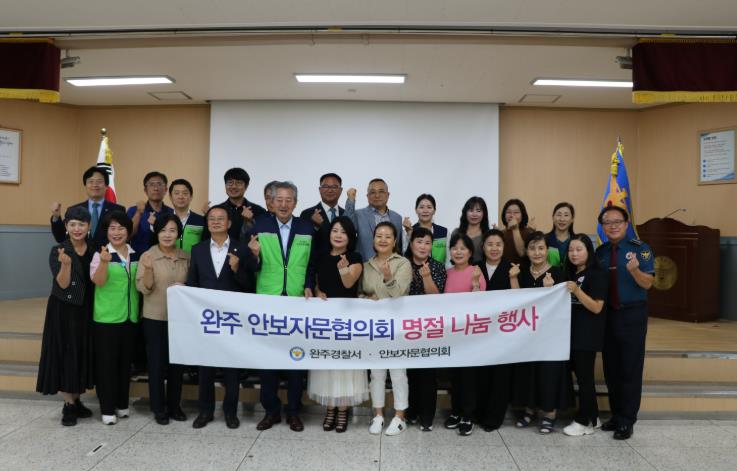 [뉴스앤톡] 완주경찰서는 추석명절을 맞이해 지난 29일, 추석명절을 맞이하여 군의회 김재천 부의장, 이순덕 의원 및 안보자문협의회, ㈜정석케미칼, 삼례·봉동 로타리클럽, 봉동로타리클럽등 30여명은 탈북민을 위한 따뜻한 사랑 나눔 행사를 가졌다.