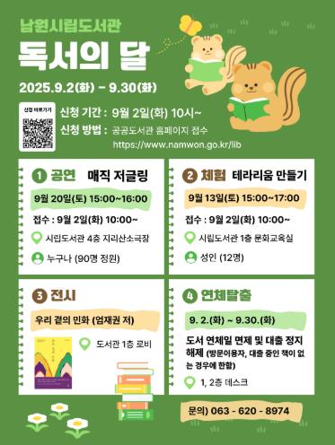 ▲ 9월은 독서의 달, 남원시공공도서관 행사 풍성 |
