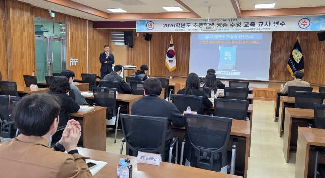 [뉴스앤톡] 성주교육지원청은 4월 1일 15:00 성주교육지원청 3층 대회의실에서 성주 관내 11개 초등학교 수영 교육 담당 교사 연수를 실시했다.