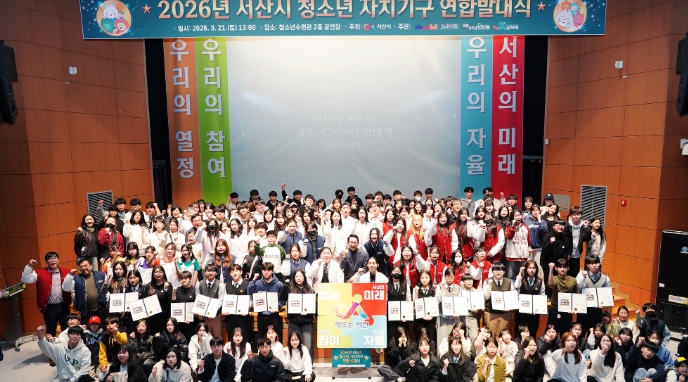[뉴스앤톡] 서산시 청소년수련시설은 지난 21일 서산문화복지센터 공연장에서 ‘2026년 서산시 청소년 자치기구 연합 발대식’을 개최했다.