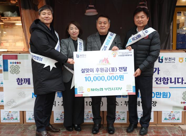 NH농협 부천시지부는 지난해 설을 맞아 고리울동굴시장에서 1,000만 원 상당의 물품을 구매했으며, 부천페이 2,000만 원을 성금으로 마련해 지역 복지관과 저소득 가구에 전달했다.
