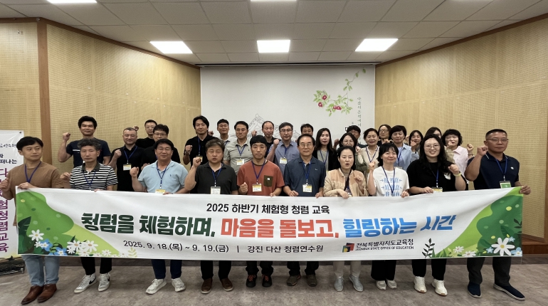 [뉴스앤톡] 전북특별자치도교육청은 18~19일 전남 강진 다산청렴연수원에서 올해 두 번째‘체험형 청렴 교육’을 실시했다.