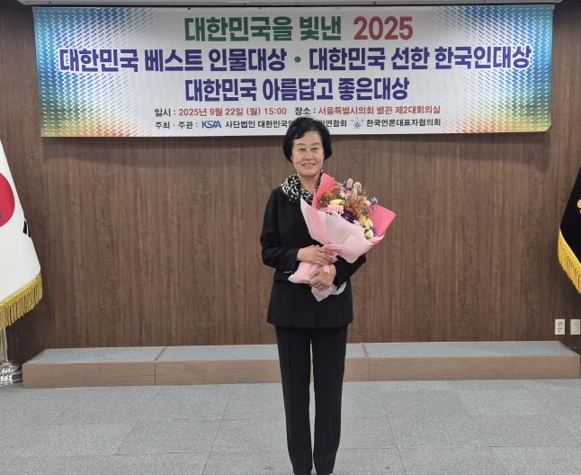 경기도의회 박명숙 의원, '2025 대한민국 베스트 인물대상' 수상