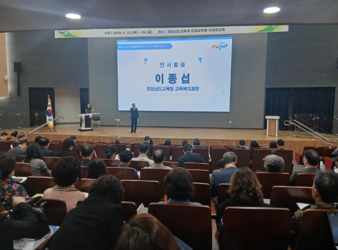 [뉴스앤톡] 경상남도교육청은 23일부터 24일까지 이틀간 의령 경상남도교육청 미래교육원(23일)과 창원 마산대학교(24일)에서 도내 전 학교장 950여 명을 대상으로 ‘학생맞춤통합지원 관리자 역량 강화 연수’를 권역별로 개최했다.