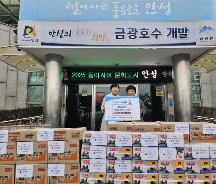 [뉴스앤톡] 안성시는 12월 23일, 금광면 주민자치위원회 양영순 위원장이 겨울철 취약계층 가구의 따뜻한 겨울나기를 돕기 위해 라면, 김 등 생필품 100만원 상당을 금광면 행정복지센터에 기탁했다고 밝혔다.