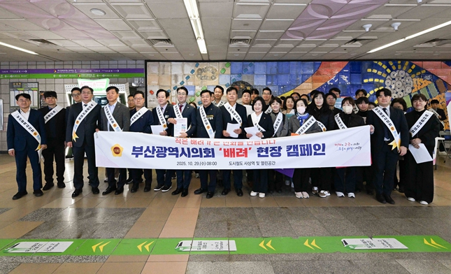 [뉴스앤톡] 부산광역시의회는 10월 29일 오늘 오전 8시, 도시철도 사상역 역사 및 야외 열린공간에서‘부산광역시의회 공익캠페인 '배려〉’ 현장 캠페인과 함께‘찾아가는 현장소통’제2회 행사를 통합 개최했다.