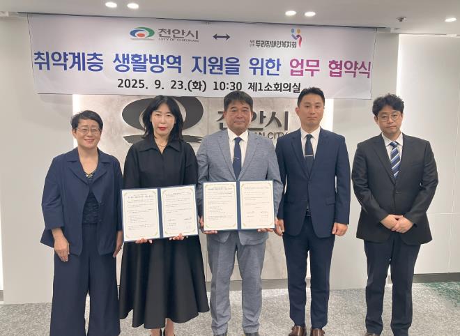 [뉴스앤톡] 천안시는 (사)두리장애인복지회와 ‘취약계층 생활방역 서비스 업무협약’을 체결하고 무료 생활방역 지원 대상을 저장강박 의심가구까지 확대한다고 23일 밝혔다.