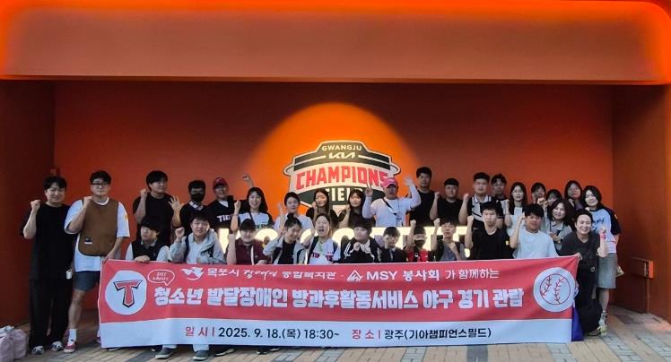 [뉴스앤톡] 목포시장애인종합복지관은 9월 18일 청소년 발달장애인 방과후활동서비스 참여학생 15명과 MSY봉사회 회원 14명이 함께 광주-기아 챔피언스 필드를 찾아 기아 타이거즈와 한화 이글스의 프로야구 경기 관람 체험활동을 진행했다.