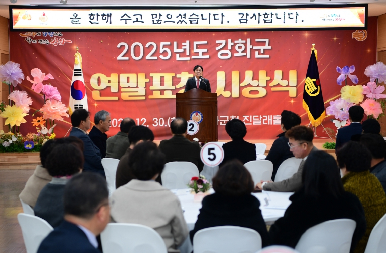 [뉴스앤톡] 강화군은 30일 한 해 군정 발전에 기여한 민간 유공자와 공무원 유공자를 위한 ‘2025년도 연말 표창 수여식’을 개최했다.