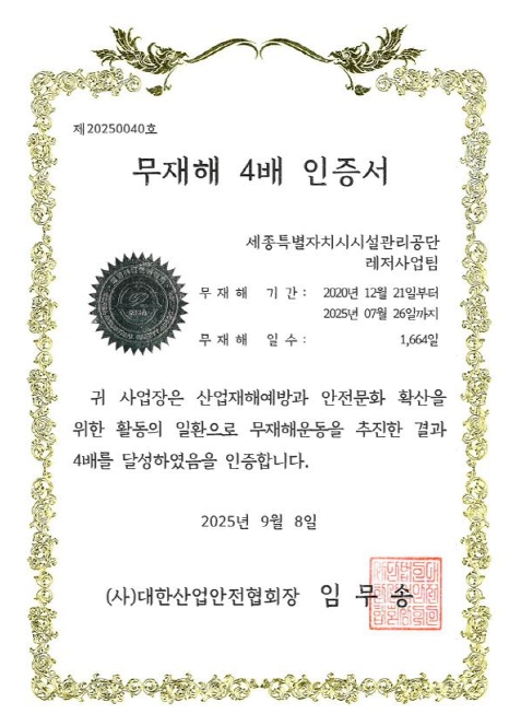 이번 성과는 전 직원이 함께한 체계적인 안전관리와 시민 참여형 프로그램 운영의 결실로, 공단은 앞으로 무재해 5배수 달성을 목표로 한층 강화된 안전 활동을 이어갈 계획이다.