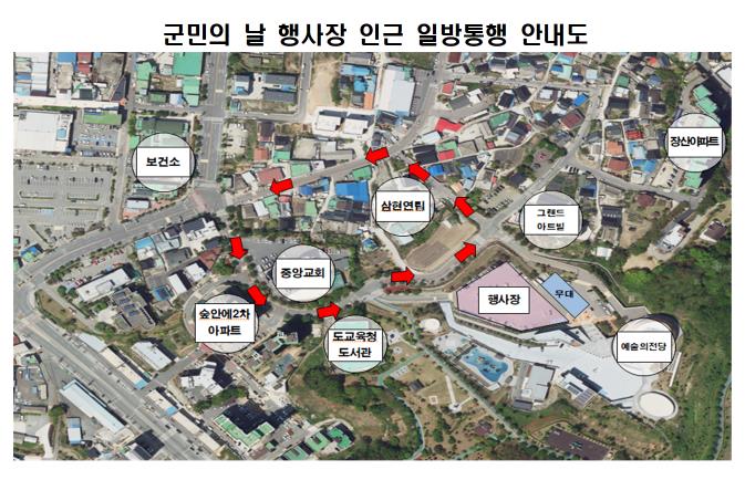 많은 군민들이 방문할 것으로 예상됨에 따라 영광군과 군민의날 추진위는 원활한 교통흐름과 안전을 위해 2일의 행사기간 동안 보건소 사거리 ⟶ 영광중앙교회 ⟶ 전남교육청도서관 ⟶ 그랜드 아트빌 사거리 ⟶ 삼현연립 ⟶ 송하카센타 방향으로 일방통행을 유도할 계획이다.