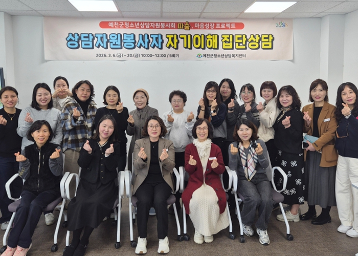 [뉴스앤톡] 예천군은 예천군청소년상담자원봉사자의 전문성 향상과 심리적 성장을 지원하기 위해 '상담자원봉사자 마음성장 프로젝트 집단상담'을 운영한다고 밝혔다.