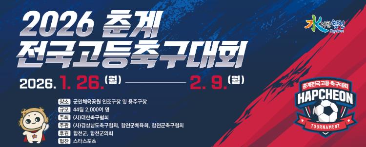 대한축구협회가 주최하고 경상남도축구협회와 합천군체육회, 합천군축구협회가 공동 주관하는 이번 대회에는 전국 44개팀, 2,000여 명의 선수가 참가해 15일간 겨울 추위 속 열정 가득한 경기를 이어나간다.