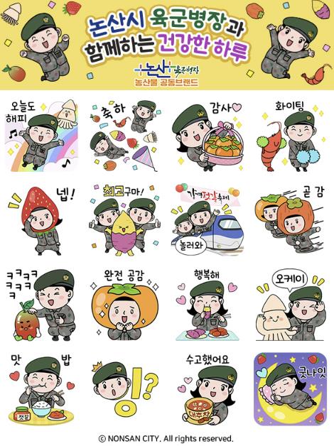 | ▲ ‘논산시 육군병장과 함께하는 건강한 하루’ 이모티콘 모음 |