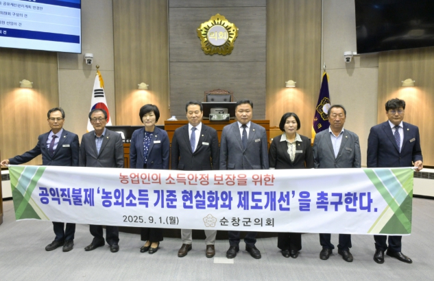 순창군의회는 △공익직불제 농외소득 기준의 현실적 상향 조정 △소득 초과 농가에 대한 탄력적 지급 및 단계적 조정제도 도입 △관련 법률의 조속한 개정 등의 내용이 담긴 건의문을 관계 기관에 송부할 예정이다.