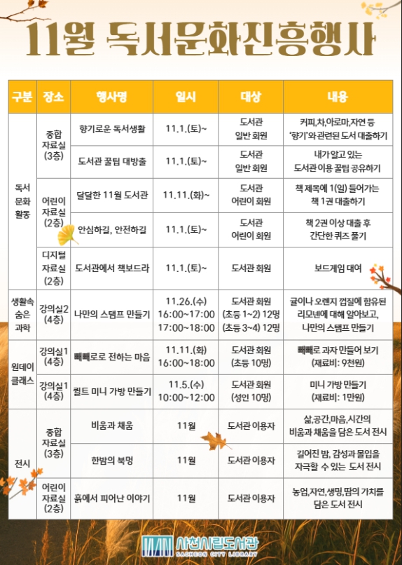 | ▲ 사천시립도서관, 2025년 11월 독서문화진흥행사 운영 |