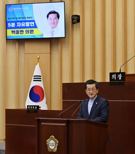 [뉴스앤톡] 광주 서구의회 백종한 의원(화정3동, 화정4동, 풍암동)이 23일 제337회 임시회 제2차 본회의에서 5분자유발언을 통해 재난·안전·민생·복지 현장에서 근무해 온 공직자들의 노고를 치하했다.