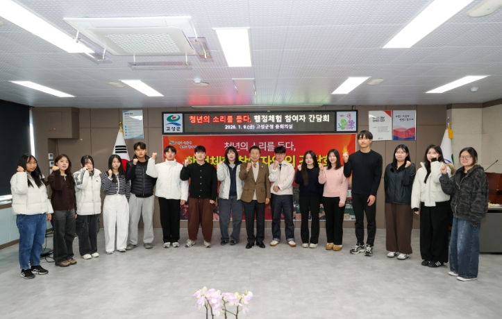 이번 간담회에는 군청 본청에 배치된 2026년 동계 행정체험 참여자 15명을 대상으로 진행됐으며, 참여 청년들을 격려하고 행정체험을 통해 느낀 소감과 고성 청년들이 체감하는 현실을 공유하는 자리로 마련됐다. 아울러 청년 정책 전반에 대한 의견을 나누는 시간도 함께 가졌다.