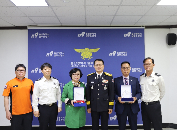 [뉴스앤톡] 울산 남부소방서는 4월 28일 오전 10시 남부소방서 3층 소회의실에서 화재 현장에서 초기 진압과 인명 대피에 기여한 용감한 시민 2명에게 감사의 뜻을 전하고자 감사패를 수여한다고 밝혔다.