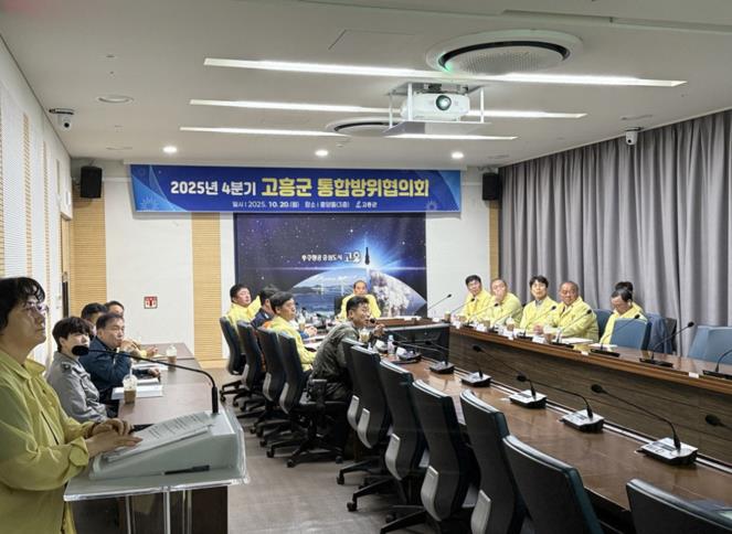 [뉴스앤톡] 고흥군은 지난 20일 군청 흥양홀에서 2025년 화랑훈련 연계 4분기 통합방위협의회 회의를 개최하고, 민·관·군·경·소방 간 통합방위태세를 점검했다고 밝혔다.