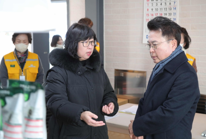 육동한 시장은 이날 사업 운영 공간을 둘러보며 물품 지원 절차와 이용 흐름을 살피고 현장 관계자들로부터 운영 현황을 보고받았다.