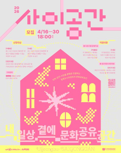 [뉴스앤톡] 의정부문화재단이 문화도시조성사업의 주요 과제인 ‘15분 문화생활권’ 조성을 위해 2026 문화 공유공간 지원사업 '사이공간' 참여 공간을 오는 4월 30일 18시까지 모집한다.