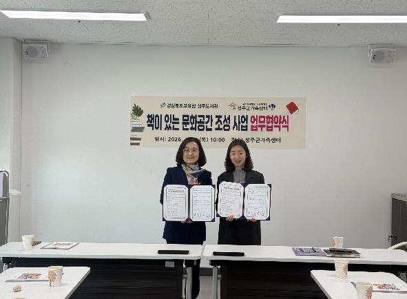 [뉴스앤톡] 경상북도교육청 성주도서관은 4월 16일 성주군 가족센터에서 지역 생활밀착형 독서 환경 조성을 위한 '책이 있는 문화공간 조성'사업을 위한 업무협약을 체결했다.