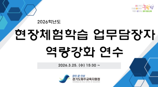 이를 위해 파주교육지원청은 3월 25일, 경기도교육청 업무협업 G-ONE 플랫폼을 기반으로 ‘2026학년도 현장체험학습 업무담당자 역량강화 연수’를 비대면으로 실시했다.