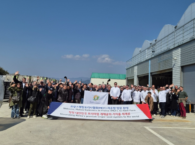 [뉴스앤톡] 세계 최고의 미식 권위를 자랑하는 프랑스명장요리사협회(Maîtres Cuisiniers de France) 소속 셰프 180여 명을 포함한 관계자 200여 명이 2026년 3월 21일 경남 거제시의 개체굴 생산 현장인 ‘라온팜’(대표 엄성)을 방문했다.