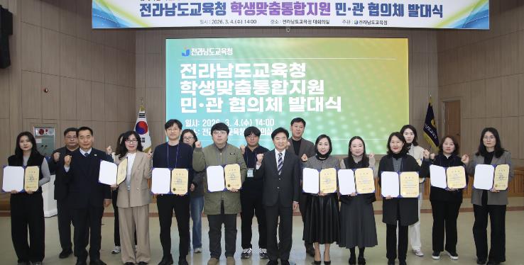 [뉴스앤톡] 전라남도교육청이 3월 4일 청사 대회의실에서 광역 단위 ‘학생맞춤통합지원 민관협의체’ 발대식을 갖고, 지역사회와 함께하는 학생 통합지원 체계를 본격 운영한다.