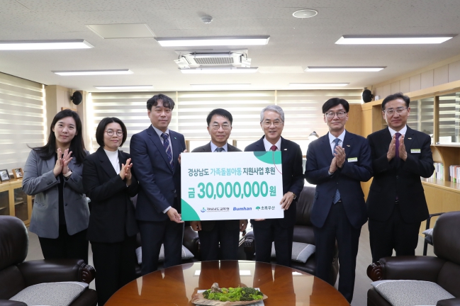 [뉴스앤톡] 경상남도교육청은 6일 경남교육청 교육감 집무실에서 범한그룹, 초록우산어린이재단 경남지역본부와 함께 ‘가족돌봄아동지원사업’ 후원금 전달식을 개최했다.
