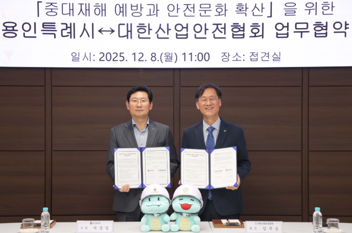 [뉴스앤톡] 용인특례시는 8일 시청 4층 접견실에서 대한산업안전협회와 ‘중대재해 예방과 안전문화 확산을 위한 업무협약’을 맺었다.