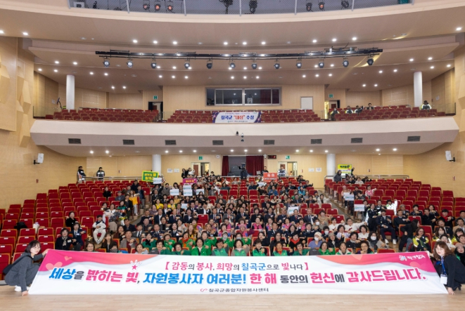 [뉴스앤톡] 칠곡군은 지난 3일 칠곡군 왜관읍에 위치한 칠곡군 교육문화회관에서 ‘감동의 봉사, 희망의 칠곡군으로 빛나다’라는 주제로 김재욱 칠곡군수, 이상승 칠곡군의회 의장을 비롯한 주요 기관단체장과 자원봉사자 700여명이 참석한 가운데‘2025년 칠곡군 자원봉사자 대회’를 개최했다.
