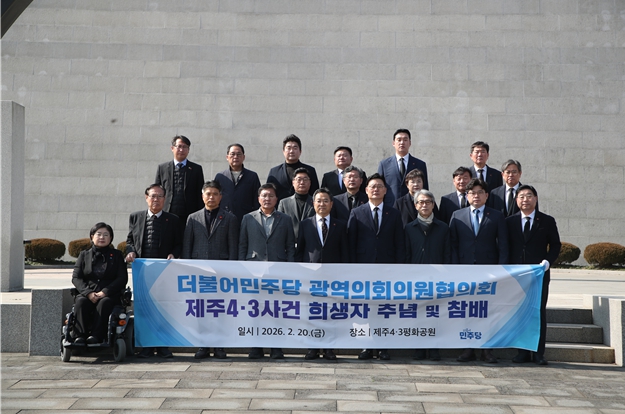[뉴스앤톡] 제주특별자치도의회 더불어민주당 교섭단체(원내대표 송창권)는 2월 20일 오전 11시 제주4·3 평화공원에서 더불어민주당 전국광역의회의원협의회와 함께 제주4·3 희생자 추모 및 참배를 진행했다.
