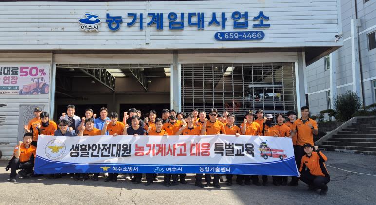 이날 훈련은 여수시 농업기술센터 농기계임대사업소에서 소방공무원 30여명이 참석하여 진행됐으며, 농기계별 사고 대응 능력 강화와 신속한 안전사고 대응체계 구성을 통한 지역사회 안전 확립을 위해 마련됐다.
