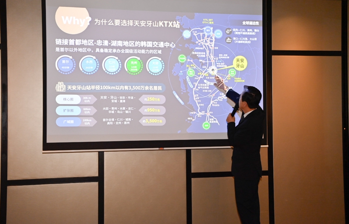 또 “케이티엑스(KTX) 천안아산역과 광역복합환승센터를 중심으로 전국 접근성이 뛰어나며, 인천·청주공항, 항만 기반시설(인프라)과 연계해 해외 수요까지 흡수할 수 있다”고 강조했다.