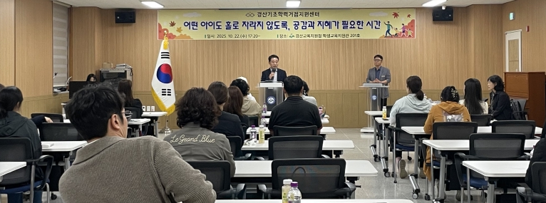 [뉴스앤톡] 경산교육지원청 경산기초학력거점지원센터는 2025년 10월 22일(수) 경산교육지원청 학생교육지원관 2강당에서 경산·청도 지역 초등학교 학부모 80여 명을 대상으로 학부모 연수회를 열었다.