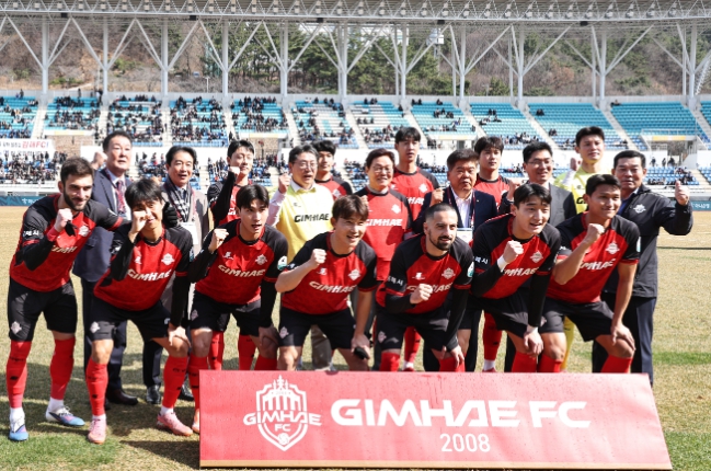 [뉴스앤톡] 경상남도는 28일 오후 김해종합운동장에서 열린 김해FC와 안산 그리너스의 홈 개막전을 찾아 김해FC의 프로리그 첫 공식 데뷔전을 축하하고 선수단을 격려했다.