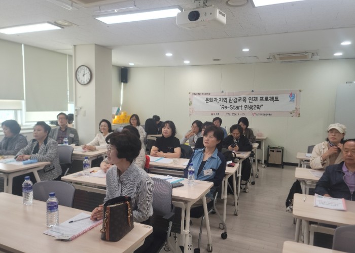 ‘은퇴자, 지역 환경교육 인재 프로젝트 Re-Start 인생 2막’은 경기도자원봉사센터 공모사업에 선정돼 사업비 420만 원을 지원받아 운영하는 사업이다. 이날 예비 교육에는 은퇴자 20여 명이 참석해 환경교육 강사의 역할과 활동 방향을 안내받고, 향후 교육과정과 자원봉사 계획을 공유했다.